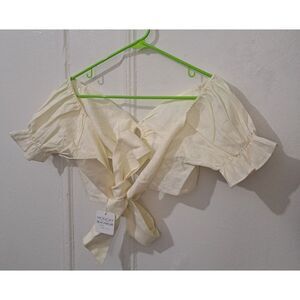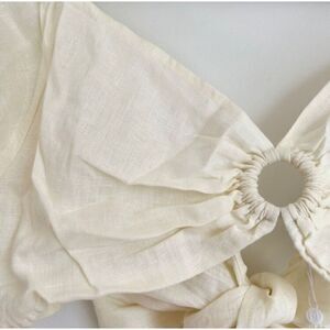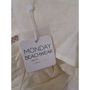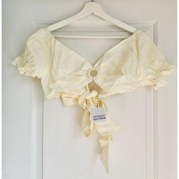 Monday Beachwear Womens Medium Ivory Cropped ACAPULCO TOP 100% LINEN WRAP TIE