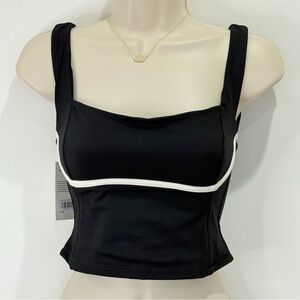 Monday Body Zion Tank Top Black Ivory Piping Medium Cropped Yoga Workout New