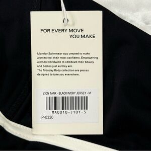 Monday Body Zion Tank Top Black Ivory Piping Medium Yoga Workout Athleisure New