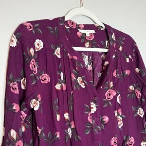 Monday Fun 3/4 Sleeve Split Neck Purple Floral Rayon Top NWOT Size Medium