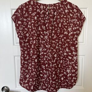Monday Fun Floral Burgundy Red Short Sleeve Blouse Size XL