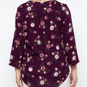 Monday Fun NWOT Kearney Henley Floral Tunic Blouse Top Plum Women’s Size Small