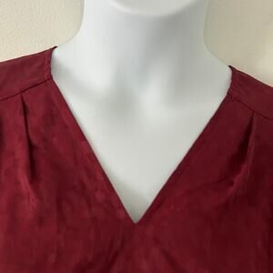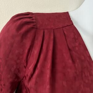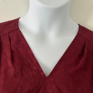 Features: V-nack, Tie back and tie cuffs, 3/4 sleeves, burgundy printed, side slits