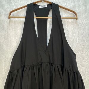 Monday12 Black Cotton Linen V-Neck Razorback Babydoll Summer Dress Small