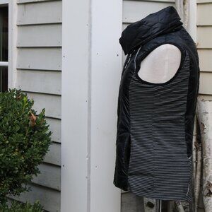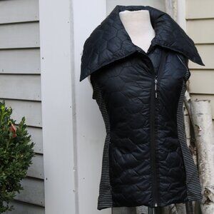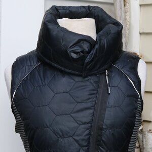 Mondetta Black Quilted w Knit Grey Stripe Fold Over Turtleneck Down Vest