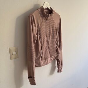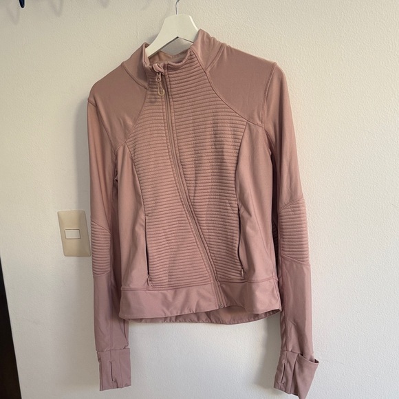 Chic blush ribbed jacket with zip-up design. Ideal for everyday style and upping your workout fit.