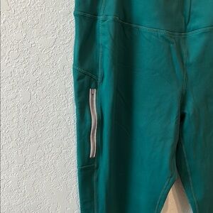 Experience comfort and style with these sleek green leggings. Perfect for any activity. Inseam 28”