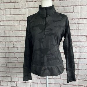 Mondetta Half Zip Pullover Fleece Lined Athletic Sweatshirt. EUC. Stretchy and cozy. Camo pattern. Thumbholes. No pockets.