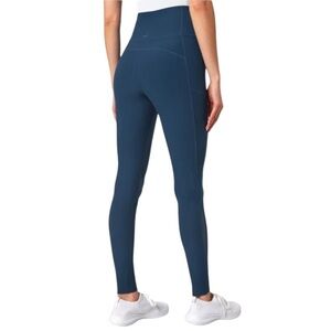 Experience comfort and style with these high-waisted blue leggings. Perfect for any casual outing or workout session.