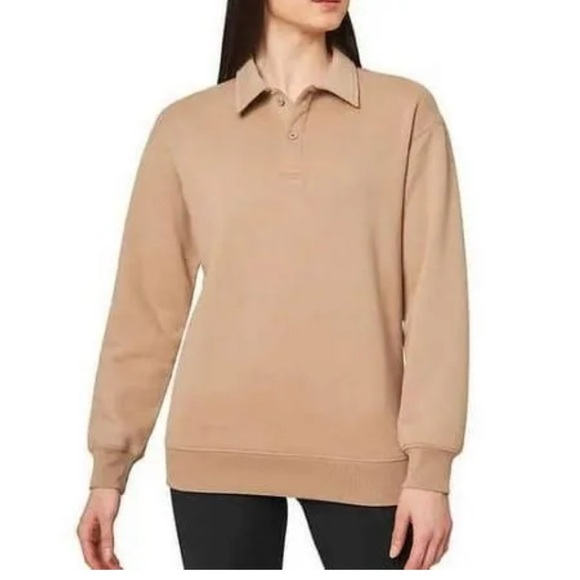 Stay cozy and stylish with this tan polo sweater. Perfect for casual outings.