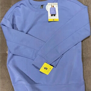 This Mondetta sweatshirt is a perfect addition to your wardrobe. With a solid pattern, long sleeves, and a relaxed fit, it's perfect for lounging or casual wear. The pullover closure and crew neck make it easy to wear, while the blended fabric of polyester, rayon, and spandex ensures stretch and comfort. Featuring the Mondetta logo as an accent, this sweatshirt is new with tags and machine washable for easy care. Ideal for walking in fall, winter, or spring, it's a must-have for any laid-back occasion or travel. Made in Jordan, this sweatshirt is a great choice for women who want style and comfort without worrying about the condition of the item.