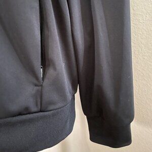 Outdoor hooded jacket made with wind and water-resistant fabric. Has chest zip pocket, two inside open pocket and two side zip pockets. Has full zipper and adjustable drawstring hoodie along with ribbed cuffs. Jacket is NWOT. Stock photo provided for reference. 100% polyester
