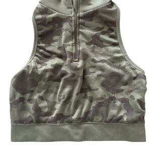 Olive sleeveless top with textured design. Comfortable and stylish.
