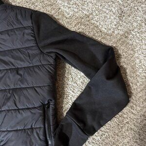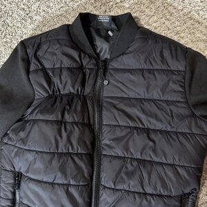 Mondetta Outdoor Project Jacket Womens Extra Small Black Quilted Bomber Ruffle Hem