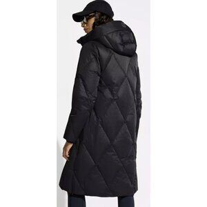 Women’s diamond-quilt long down parka in twill shell made with 100% recycled polyester, lined in recycled antistatic woven cire, and insulated with 700 fill power RDS-certified down. Relaxed fit, attached adjustable hood, secure side and interior zip pockets, hidden storm cuffs, and side zip vents for mobility. Wind- and water-resistant, it delivers dependable warmth and refined style from frosty commutes to weekend escapes.