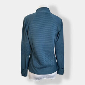 Women's size large Mondetta teal ribbed asymmetric zip athletic jacket with thumbholes