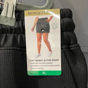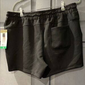 Sleek black athletic shorts. Elastic waistband with drawstring. Ideal for workouts or casual wear.