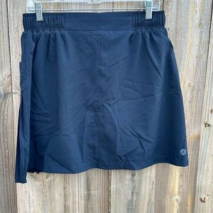 Keywords: Mondetta, skort, women's activewear, athletic skort, tennis skort, golf skort, running skort, black skort, medium size, elastic waistband, pleated design, side pockets, polyester, spandex, pre-owned.