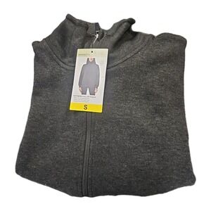 This Mondetta Women's Heathered Full-Zip Fleece Jacket in Heather Black, size S, is a versatile and stylish outerwear option for various occasions such as travel, casual outings, or workwear. Made of polyester fleece with a full zipper closure, this mid-length jacket features long sleeves and a regular fit. The solid color and classic design make it a timeless piece suitable for all seasons, providing both comfort and warmth thanks to its polyester insulation. Perfect for outdoor activities, this jacket combines functionality with a fashionable look.