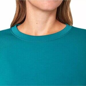 Mondetta Women's L Drop Shoulder Scuba Crewneck Relaxed Sweatshirt Stretch Teal