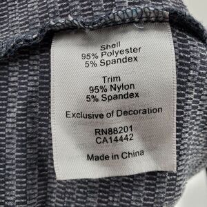 Material: Shell: 96% Polyester - 5% Spandex Trim: 95% Polyester - 5% Spandex