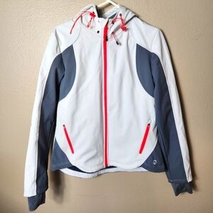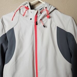 Mondetta Womens White/Gray Fleece Lined Softshell Hooded Jacket-Size L