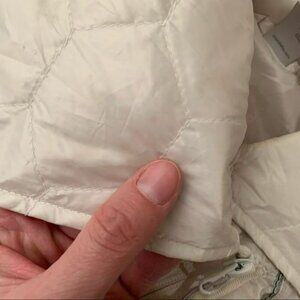 Mondetta womens small down feather puffer vest gray white striped oversized neck