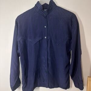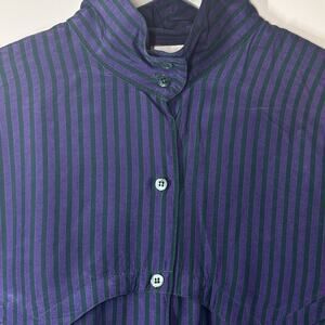 Mondi Striped Satin Button Shirt Size 36 Vintage Viscoe High Neck Elegant Blouse