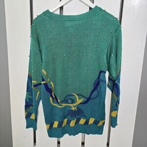 Mondi Teal Blue Flower VTG Pullover Rayon Silk Blend Embellished Sweater Size 40