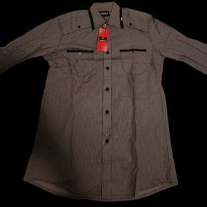 A Timeless Essential (Multiple Sizes): Add a touch of timeless style to your wardrobe with this brand new with tags Mondo classic gray button-up shirt. This versatile piece is available in a variety of sizes to ensure a perfect fit, and pairs perfectly with jeans or chinos for a casual look, or can be dressed up with slacks for a more formal occasion.