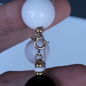 Materials: 12kt Gold Filled metal, black and white acrylic beads Length: 7.5" Clasp: spring ring with safety clasp Signed "Monet" on a tag and 1/20 12kt GF on the clasp Excellent vintage condition