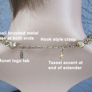 In addition to the Monet logo tag there is also a dainty chain tassel accent at the same end with the extender chain.