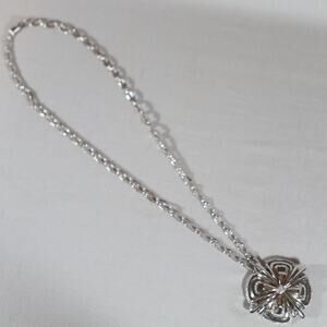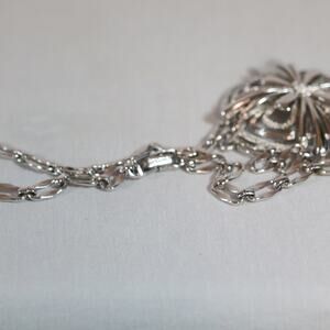 Monet 1960s Atomic Starburst Pendant Necklace Rhodium Plated Oval Ornate Links