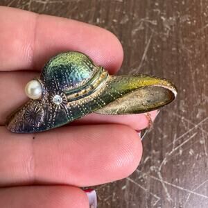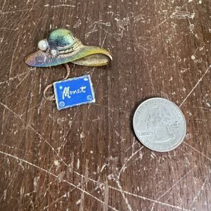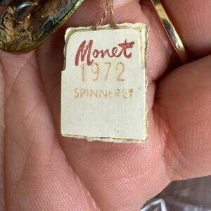 Monet 1972 Spinneret Pearl Rhinestone Ladies Hat Silver Tone Brooch Pin with tag
