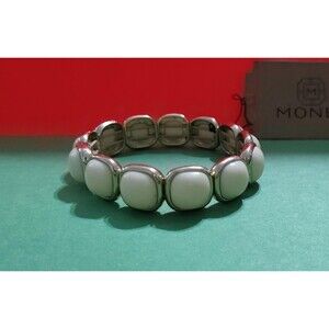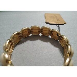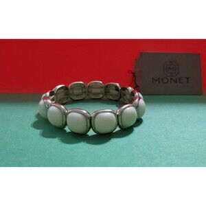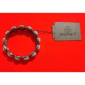 Monet Bangle Bracelet Eggshell Resin Gold Tone Metal Fashion Jewelry Stretchy x1