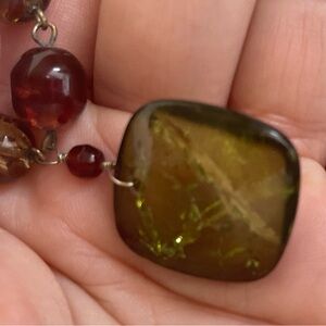 Monet Beaded Necklace with Pendant, faux amber glass.