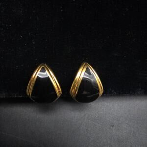 Monet Black Enamel Gold Tone Clip On Earrings VIntage Costume Jewelry