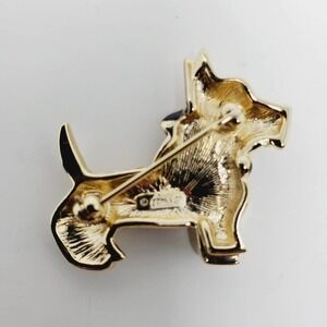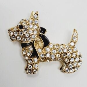 Monet Black Enamel Rhinestone Scottie Dog Terrier Figural Gold Tone Pin Brooch