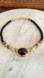Elegant black and gold necklace featuring red accents. Perfect for adding a touch of sophistication.