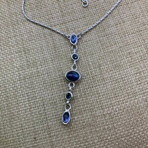 Monet Blue Crystals Drop Silver Tone Chain Elegant Necklace