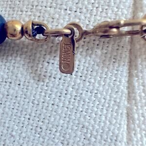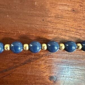 Monet Blue Navy Blue Gold Spacer Beads Necklace Vintage Retro Jewelry Marked