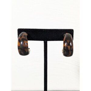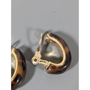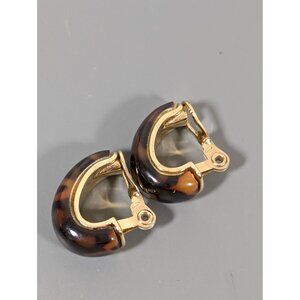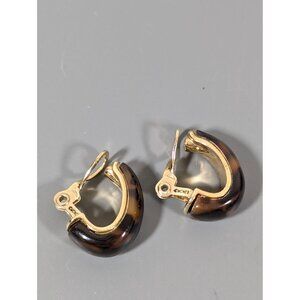 Monet Brown Faux Tortoise Hoop Huggie Drop Clip On Earrings Gold Tone
