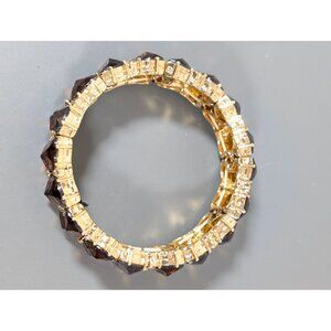 Stunning Monet brown rhinestone tennis bracelet with a stretch gold tone design. Perfect for adding a touch of elegance to any outfit.