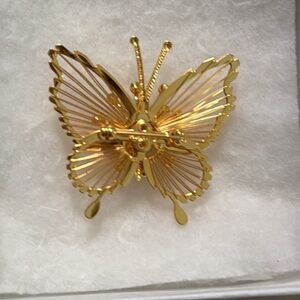 Monet Butterfly Brooch Pin Gold Tone Rhinestones Vintage Signed