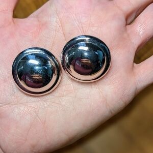 Picturing the Vintage 80s Round Silver Clip-on Earrings by Monet.