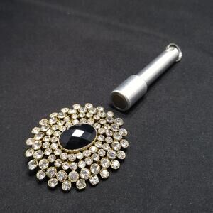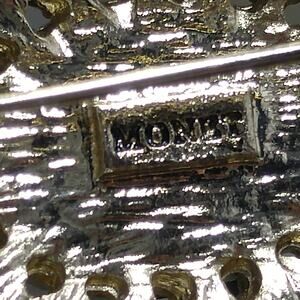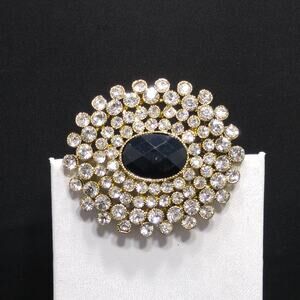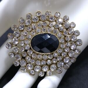 *Description: This is a beautiful Monet rhinestone brooch with a black oval faceted center which is surrounded by clear pave rhinestones in an oval shape. The gold plated backing is stamped MONET. This would be a great addition to your vintage jewelry collection or make a great vintage gift!