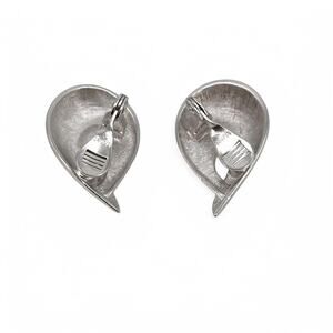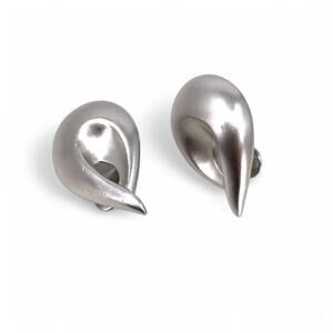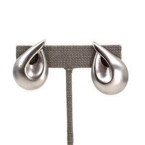 Monet Clip On Earrings Brushed Satin Silver Tone Teardrop Shape Vintage