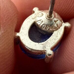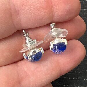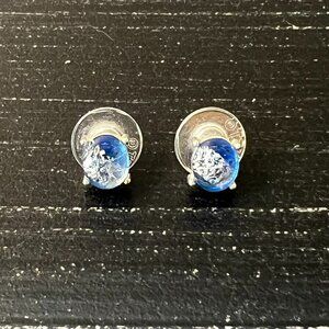Monet Cobalt Blue & Gray Tone Crystal Stone Silver Tone Stud Earrings Vintage
