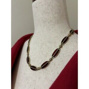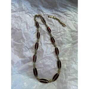 Monet Deep Red Enameled Necklace 16-18 Inches Gold Tone Extenders Signed