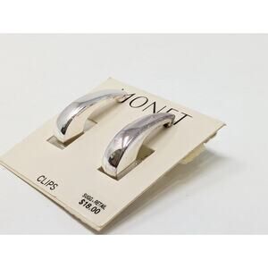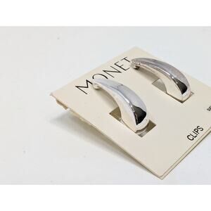 Monet Earrings Silver Tone Slim Hoop Style Screw Back Corpcore New